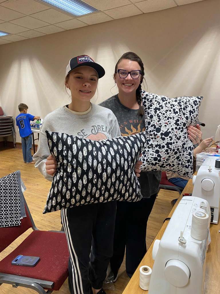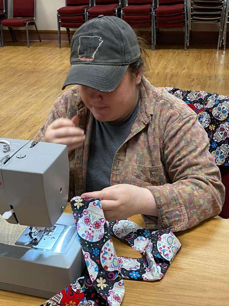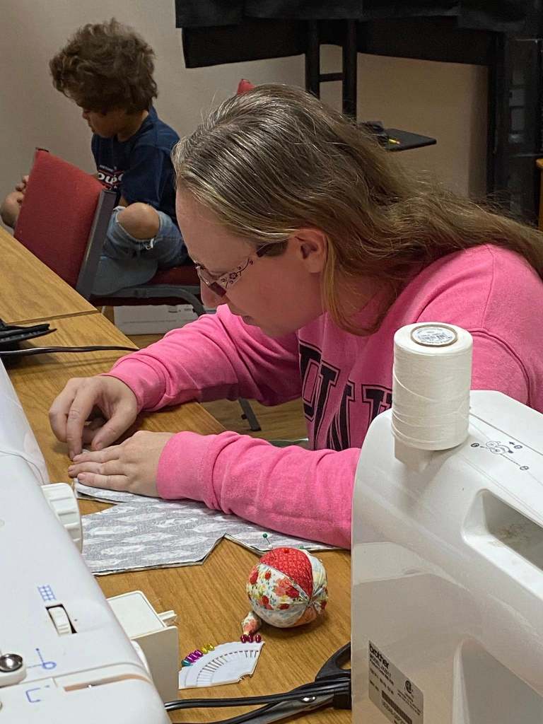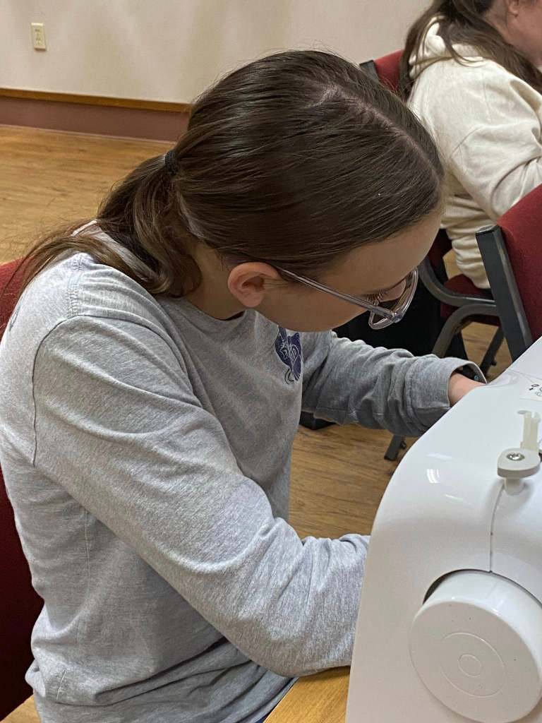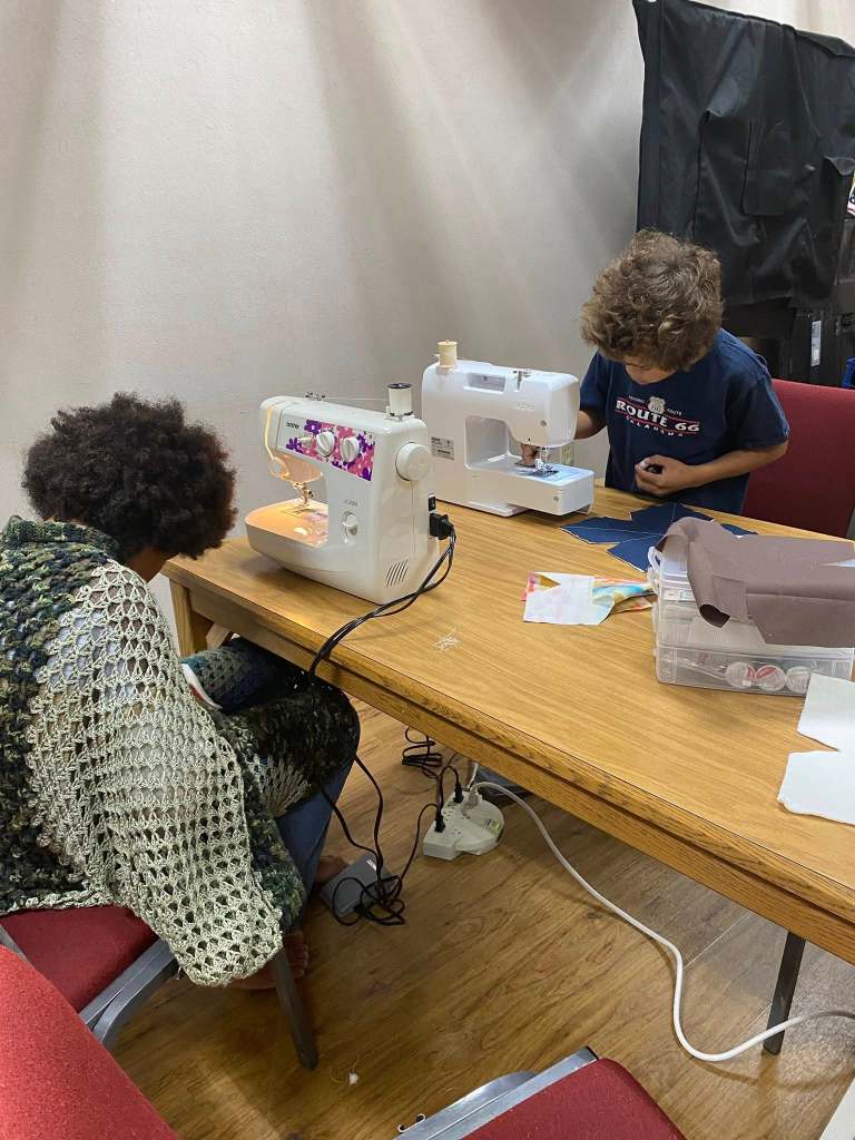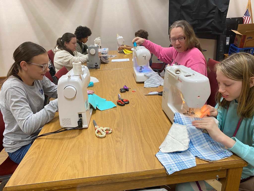 Students having fun learning to sew.