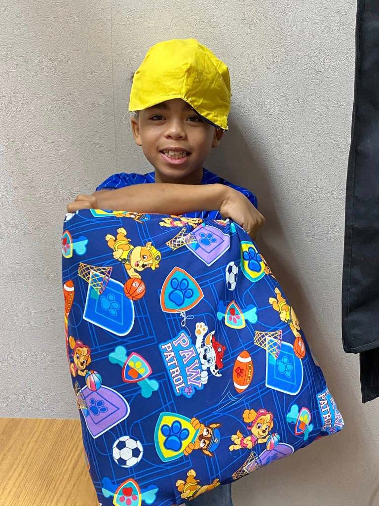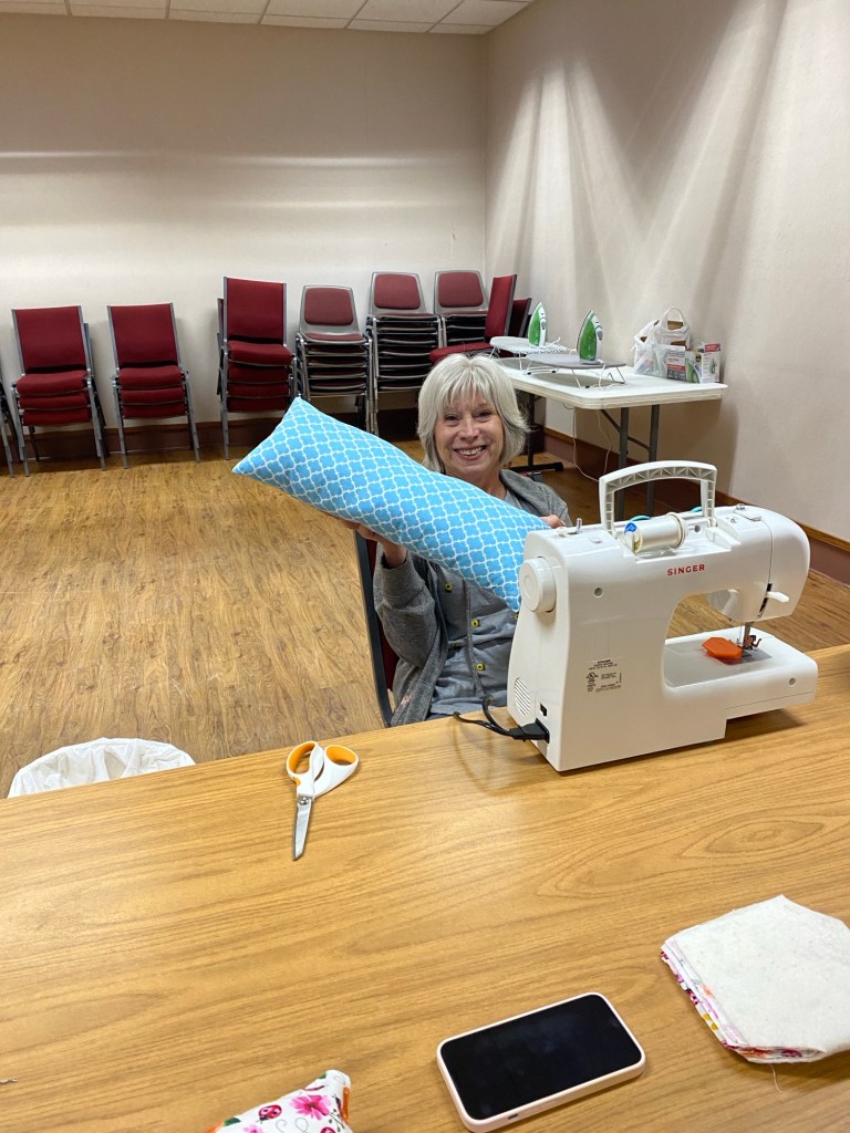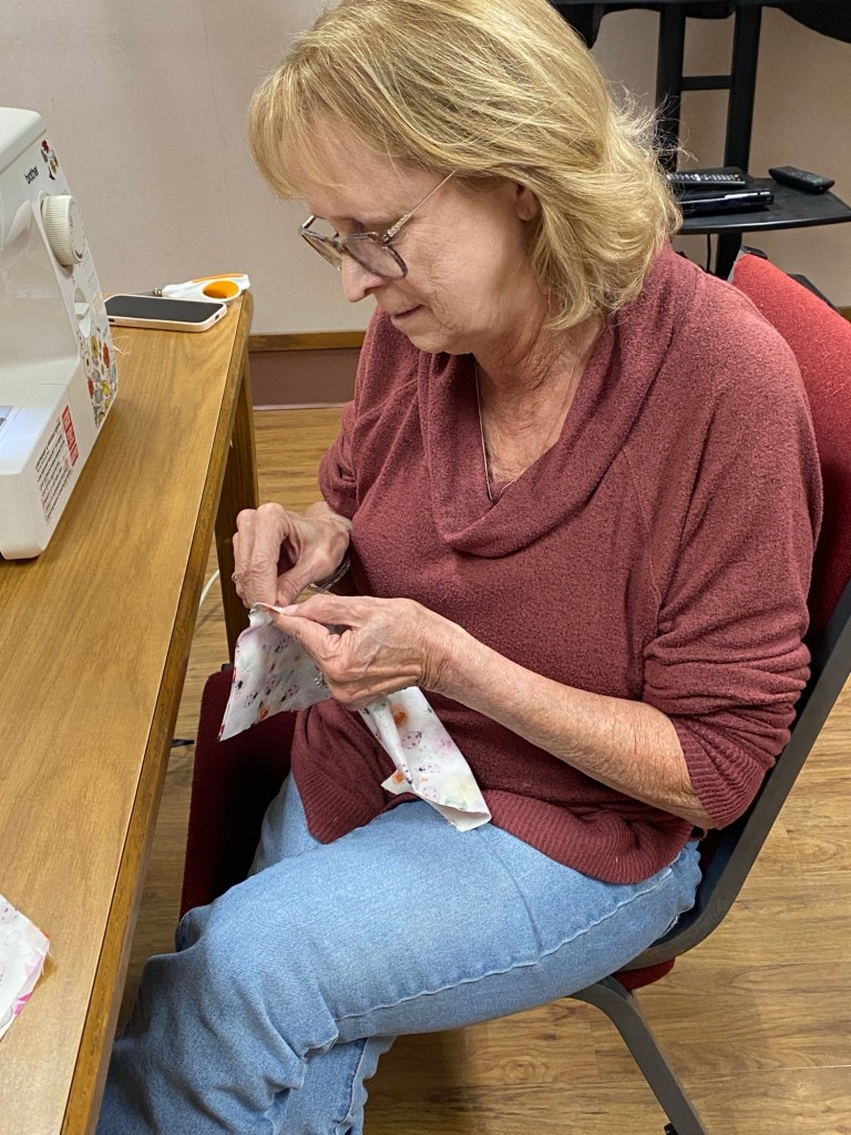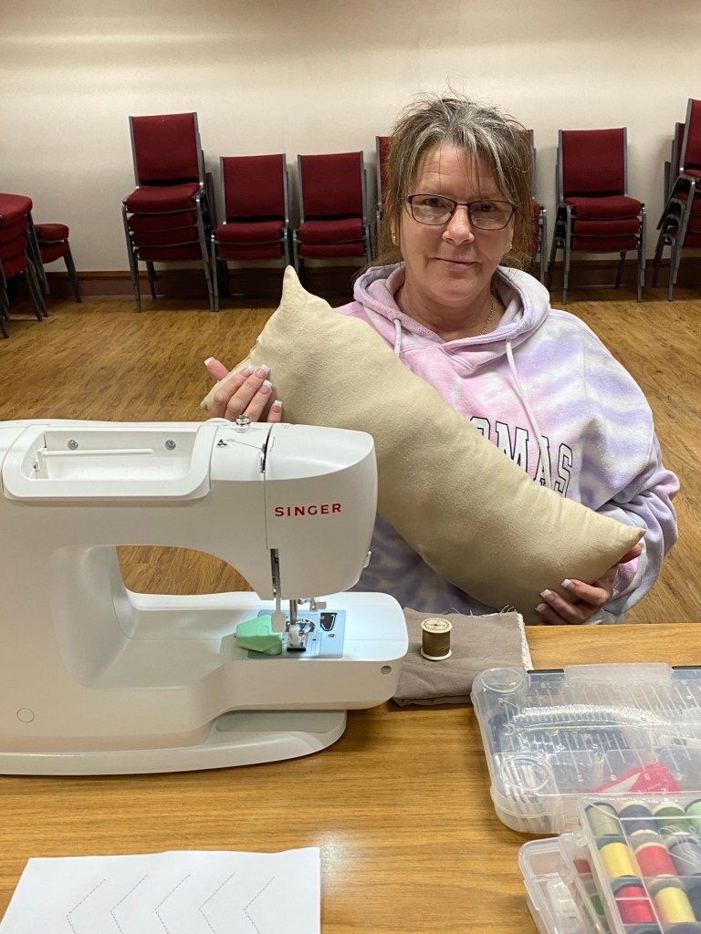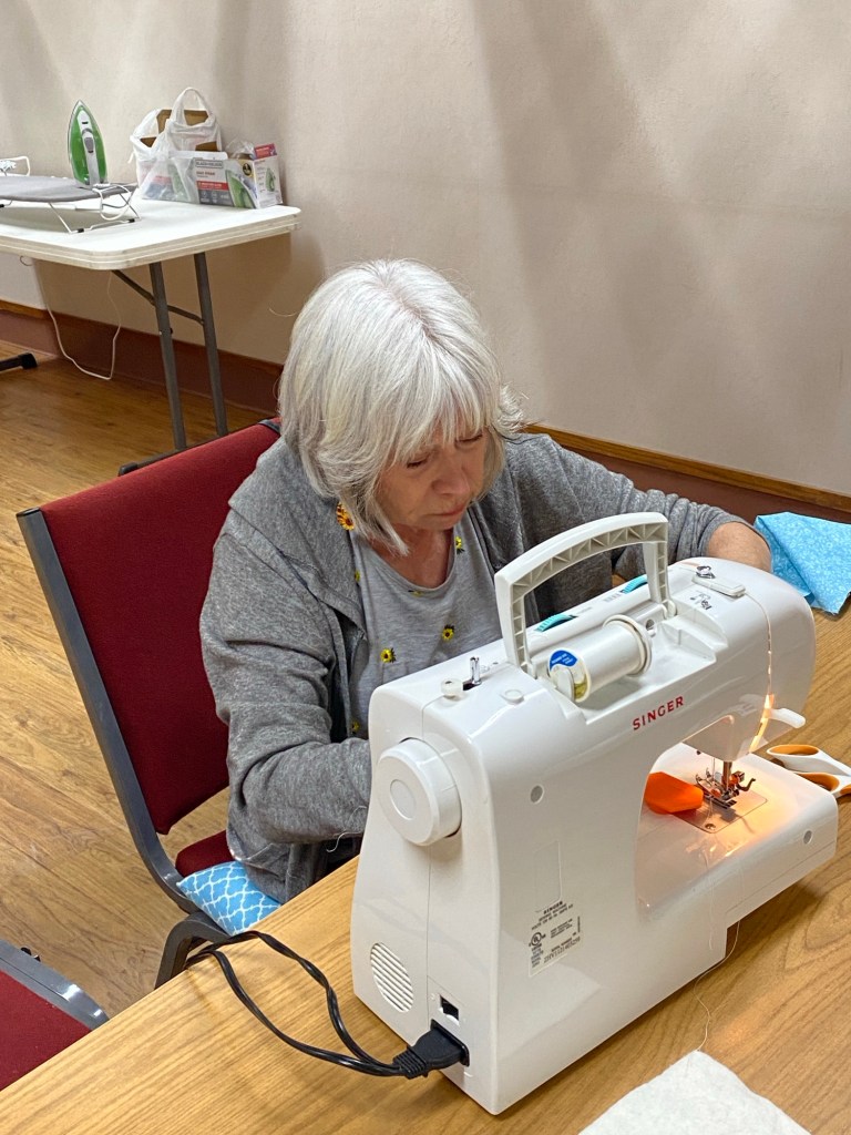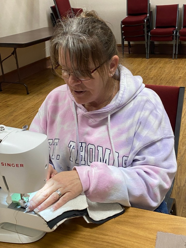 Students having fun learning to sew.